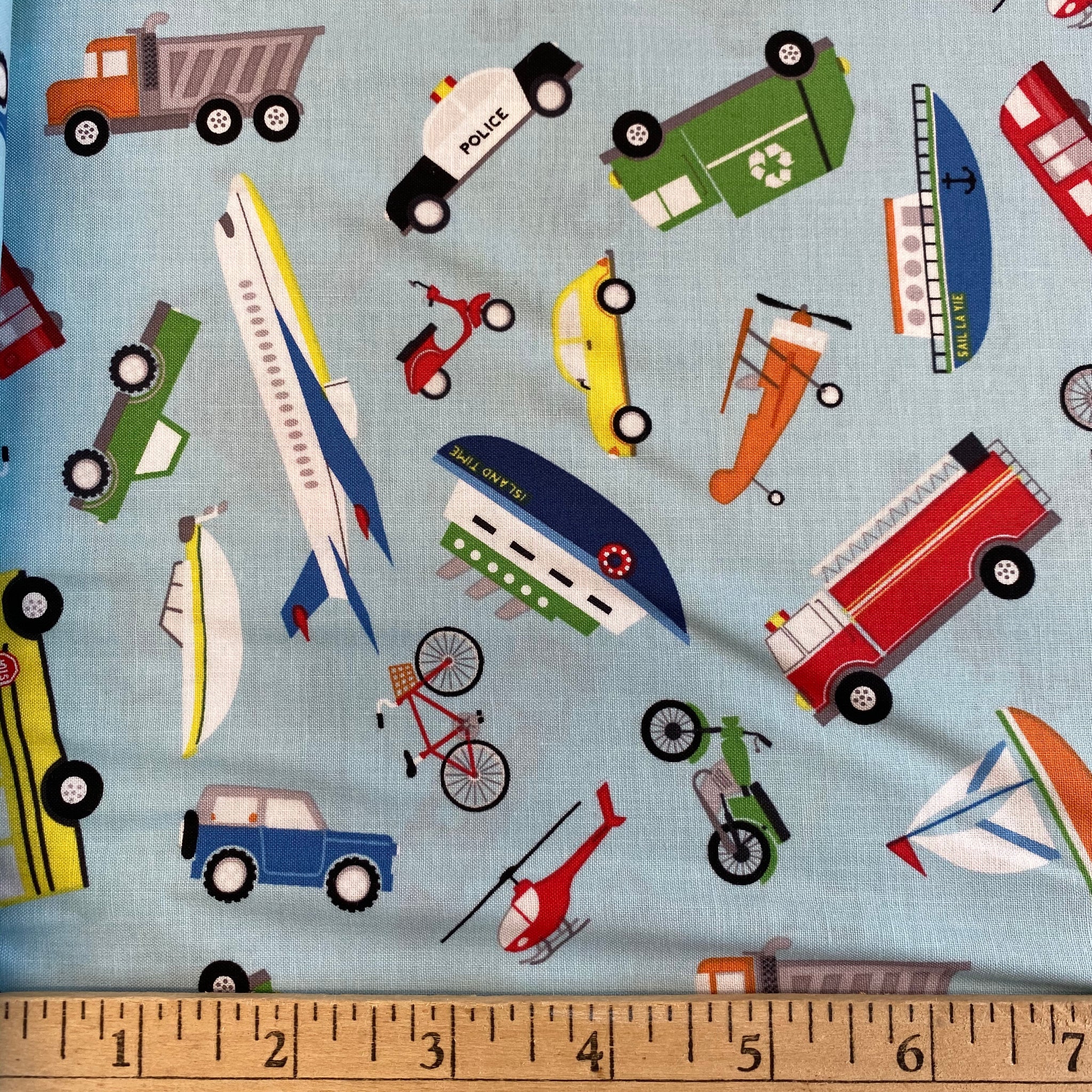 Things That Go in Aqua, sold by the half-yard